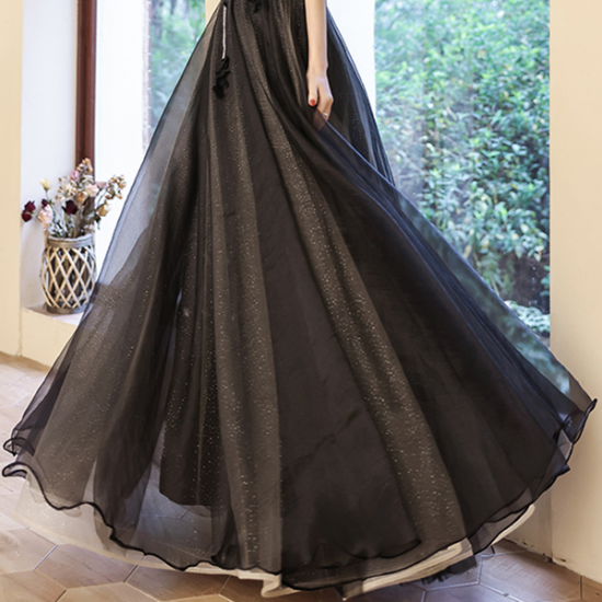 ドレス 透け感 綺麗 オーガンジー キャミソールドレス ショール ビジューライン 贅沢フレア 着回し シック 繊細 結婚式 二次会 お呼ばれ