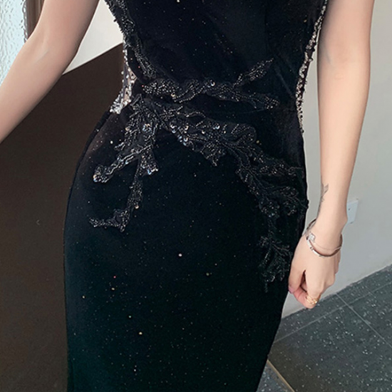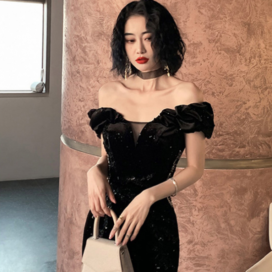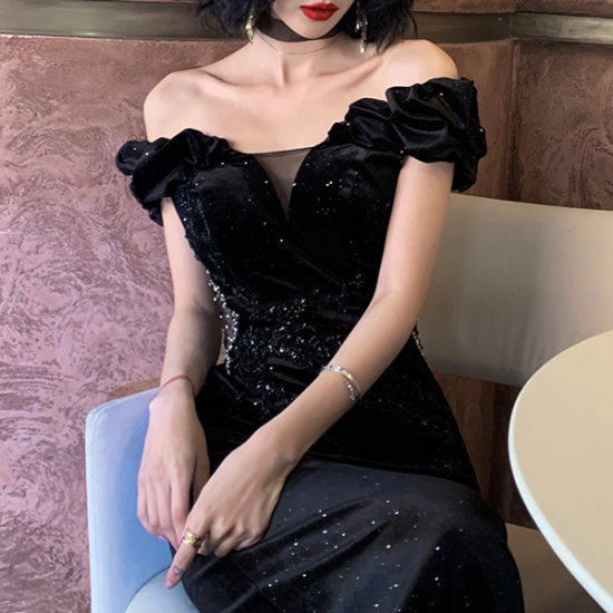 煌めきと艶感のあるブラックに気品が漂う、ドレッシーな一品。