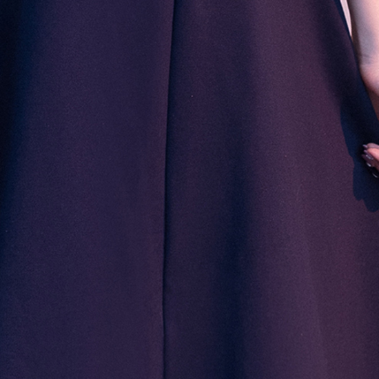 ふんわりとアシンメトリーに重ねたフレアで差を付けます。