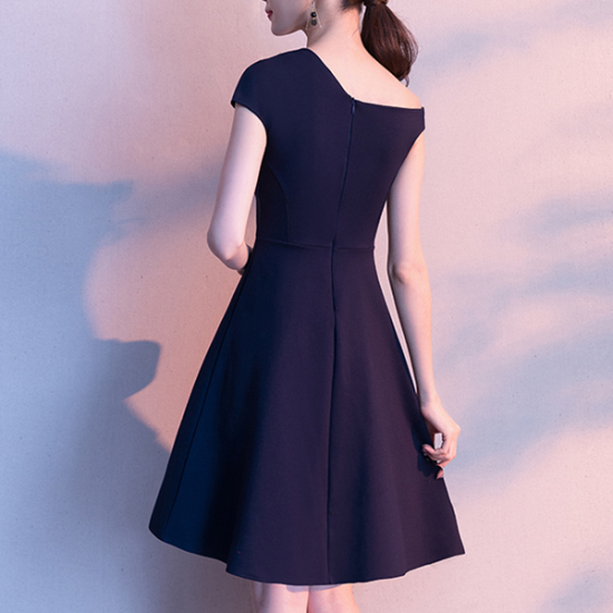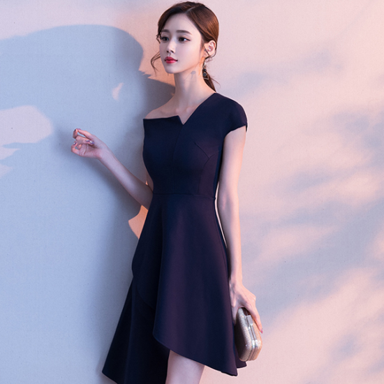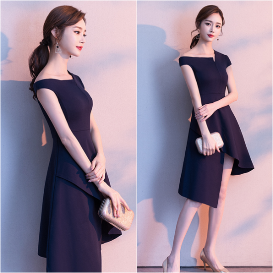 ドレス シンプルモダン ワンショルダー アシンメトリー フレア 差を付ける 凛とした ネイビー クラスアップ 結婚式 二次会 お呼ばれ