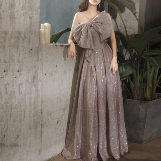 ドレス リボン 存在感抜群 煌めき ワンショルダー たっぷりフレア 女らしさ 遊び心 とっておき 結婚式 二次会 お呼ばれ