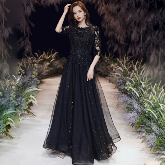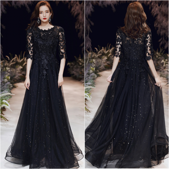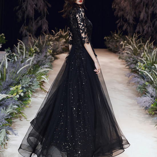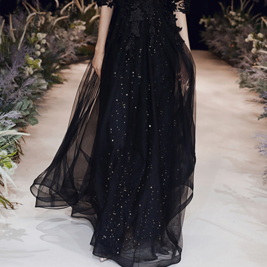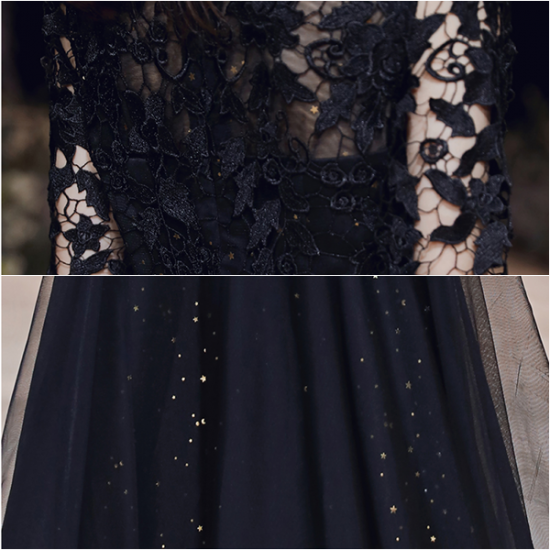 ドレス 透かし編みレース エレガント シアー ロングチュール たおやか 色香 ドレッシー ブラックドレス 旬顔 結婚式 二次会 お呼ばれ