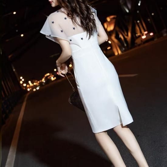 肩周りの透け感が女性らしさを引き立てるワンピース。