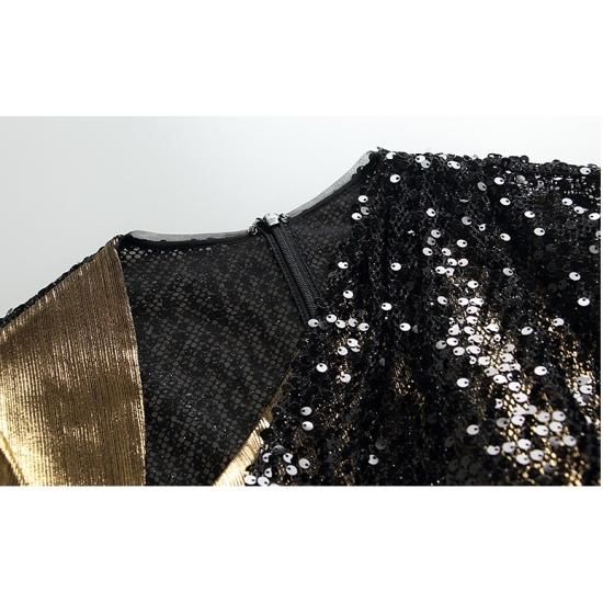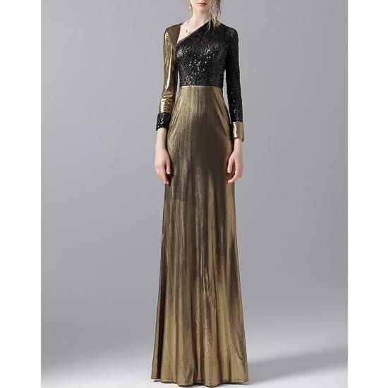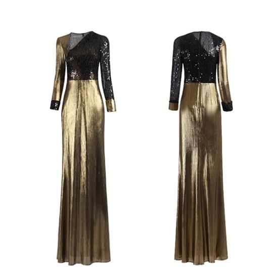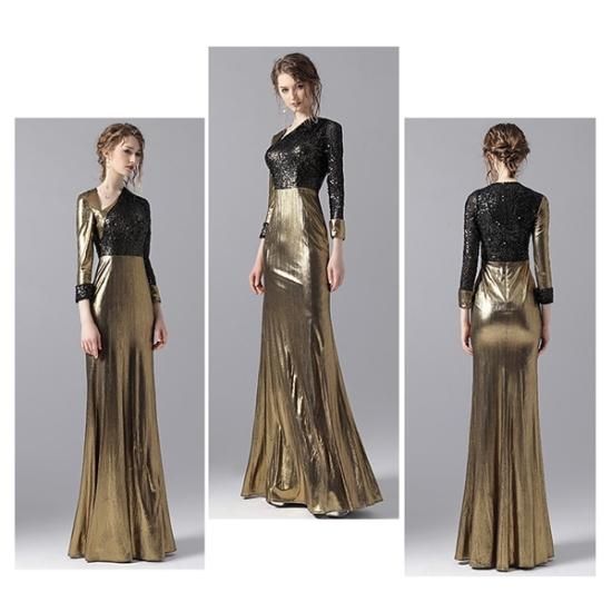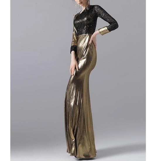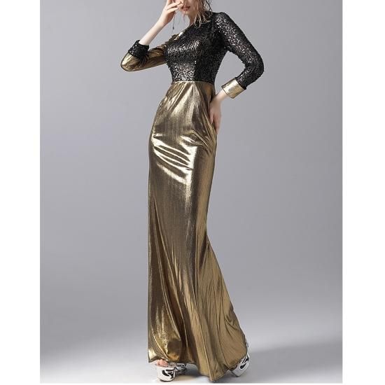ドレス ナイトドレス ロング ゴールド ブラック スパンコール ゴージャス パーティー 演奏会 発表会