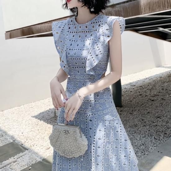 ウエストサイドにはホールがほどこされており、アクセントをプラスしながら女性らしさを引き立ててくれます。