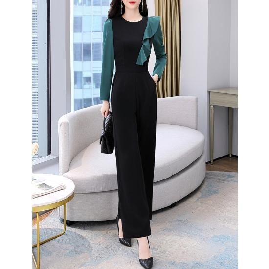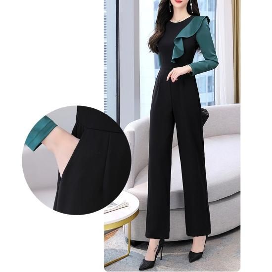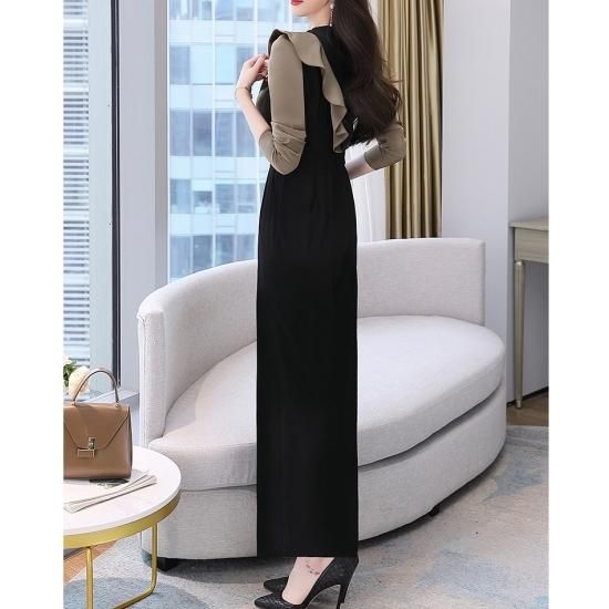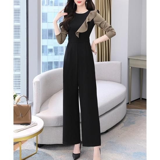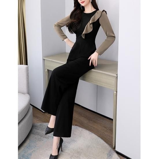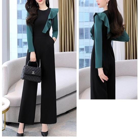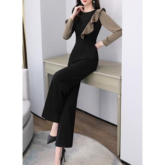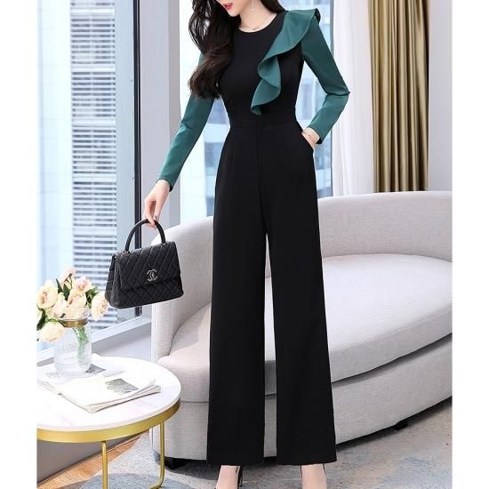 パンツ ドレス オールインワン サロペット フリル バイカラー ジャンプスーツ ワイドパンツ パーティー 結婚式 二次会 お呼ばれ