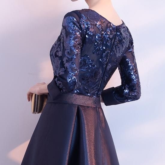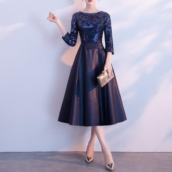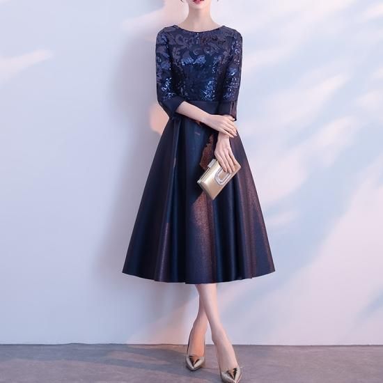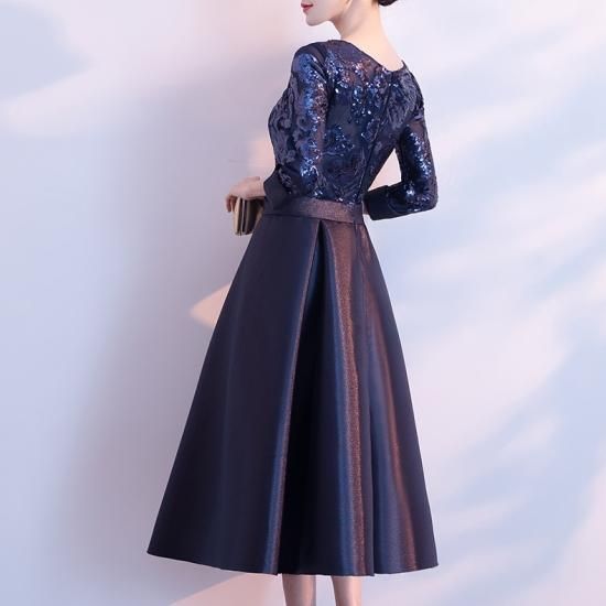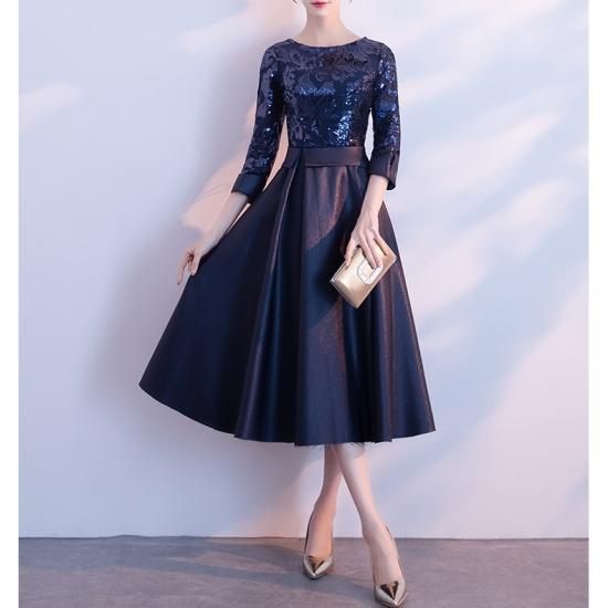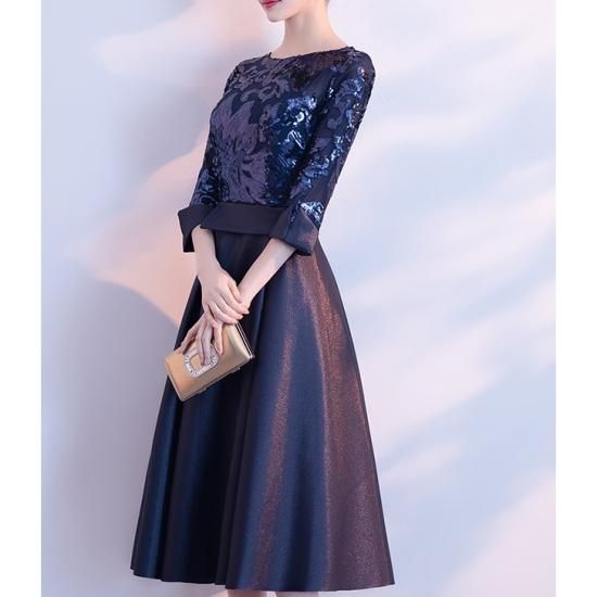 ドレス ワンピース ネイビー スパンコール フレアスカート 光沢 上品 エレガント パーティー フォーマル 結婚式 二次会 お呼ばれ