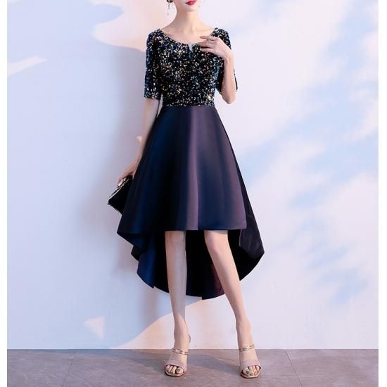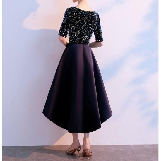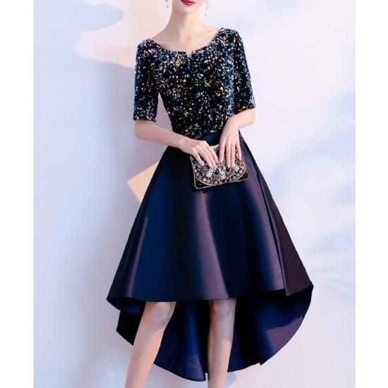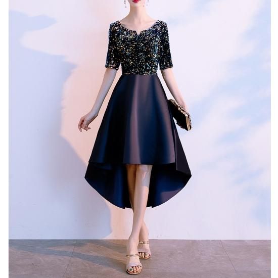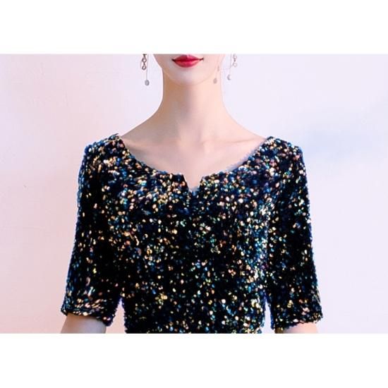 ドレス ワンピース スパンコール キラキラ 光沢 フィッシュテール スリットネック エレガント 上品 パーティー 結婚式 二次会 お呼ばれ