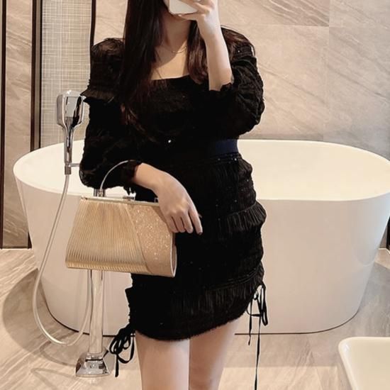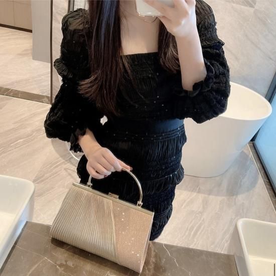 異素材切り替えが上品なパーッティーバッグ。
