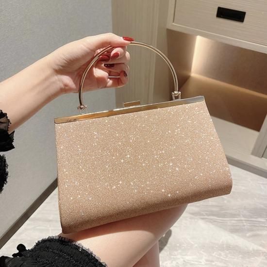 バッグ ハンドバッグ チェーンバッグ 2way がま口 ビジュー 煌めき ゴージャス 華やか 上品 お呼ばれ 結婚式 二次会 ベージュ
