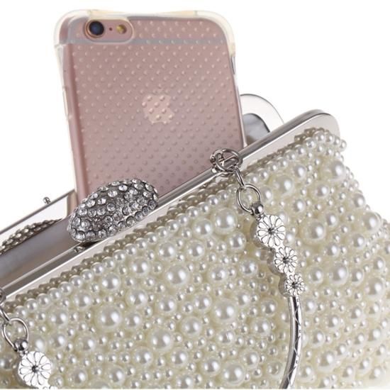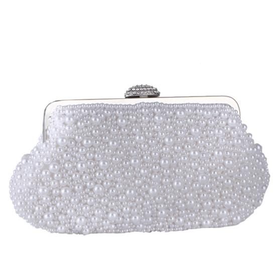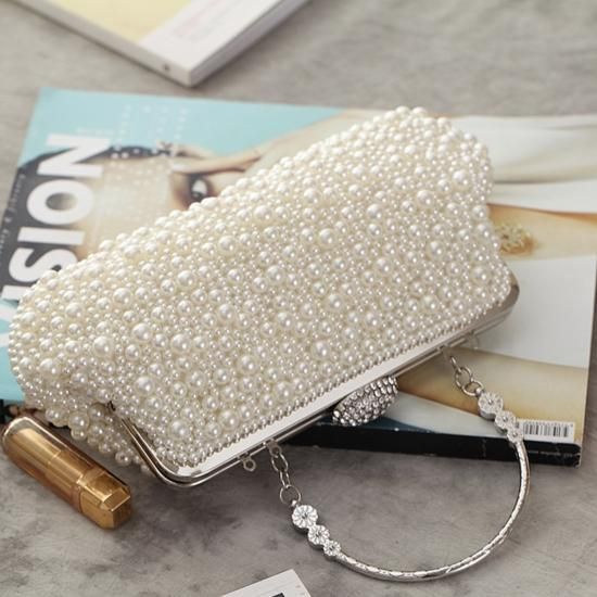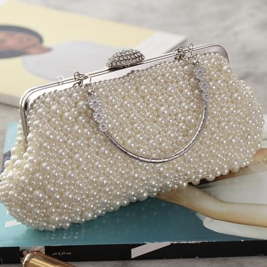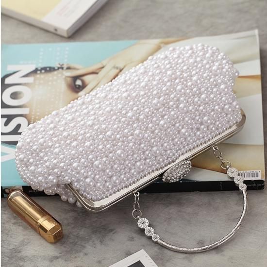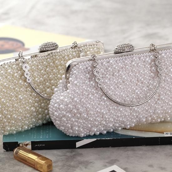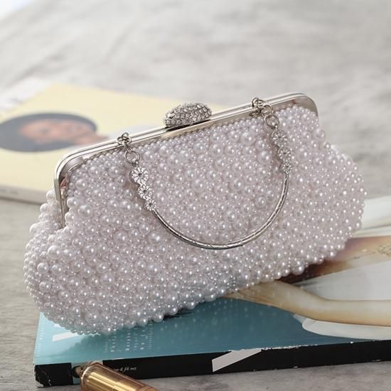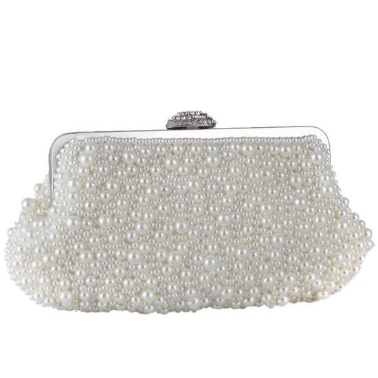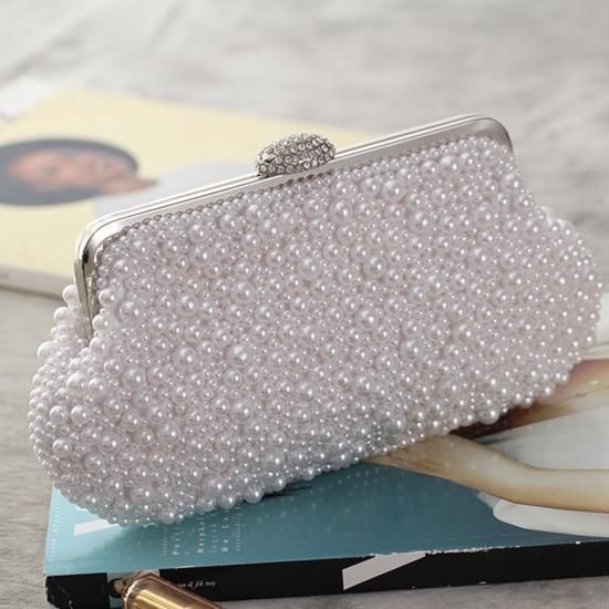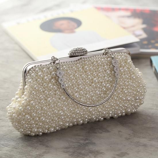 バッグ ハンドバッグ パール ビジュー がま口 クラシカル 上品 ゴージャス お呼ばれ 結婚式 二次会 ホワイト アイボリー