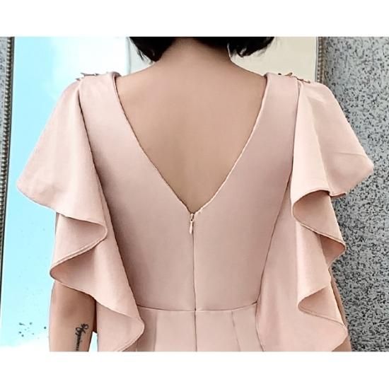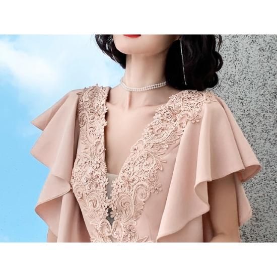 エレガントなフリル袖が大人な華やかさを叶えるドレス。