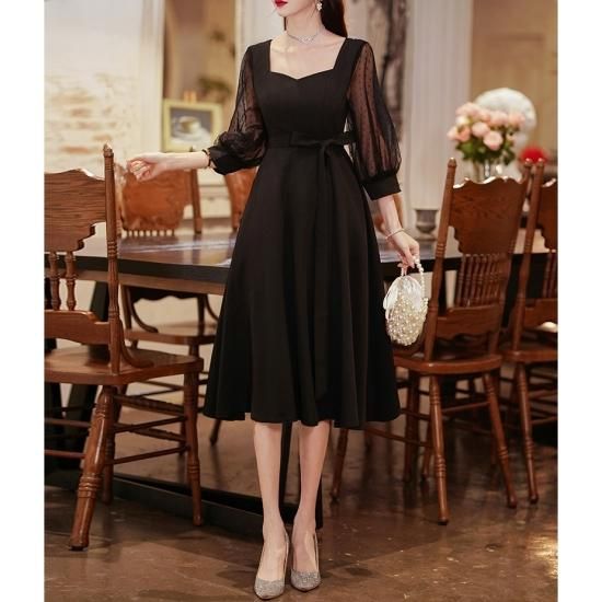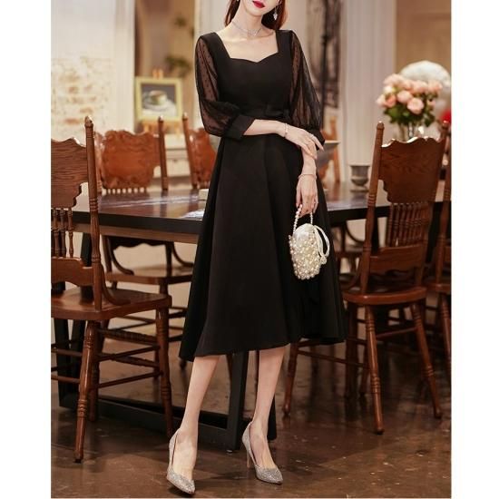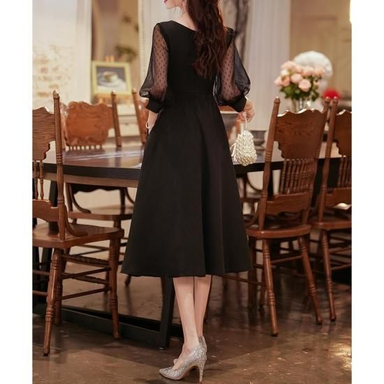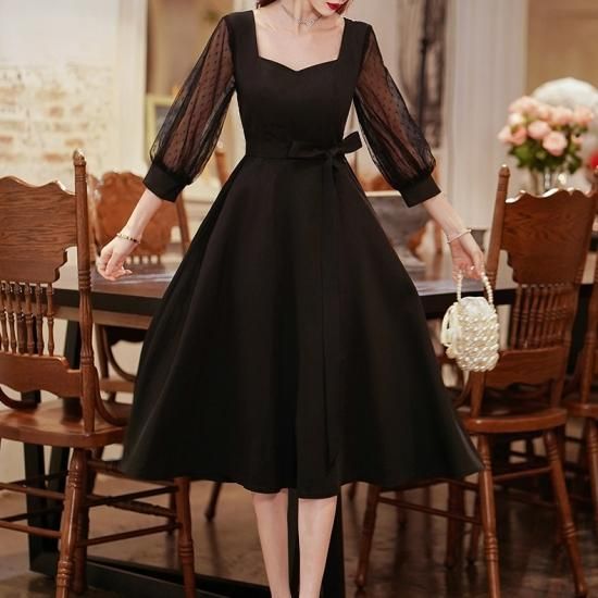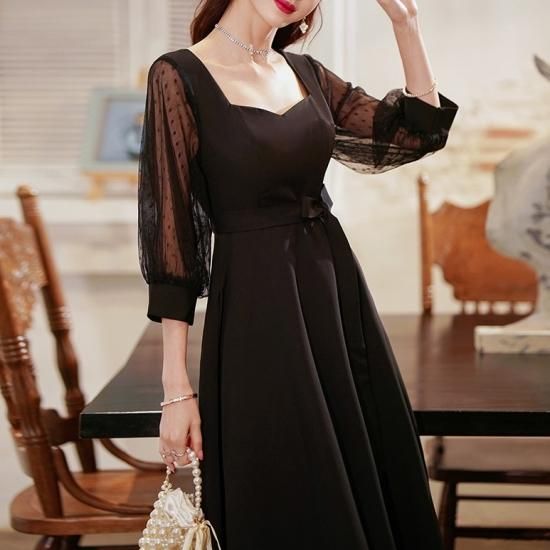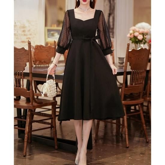 クラシカルなシルエットが上品なブラックドレス。