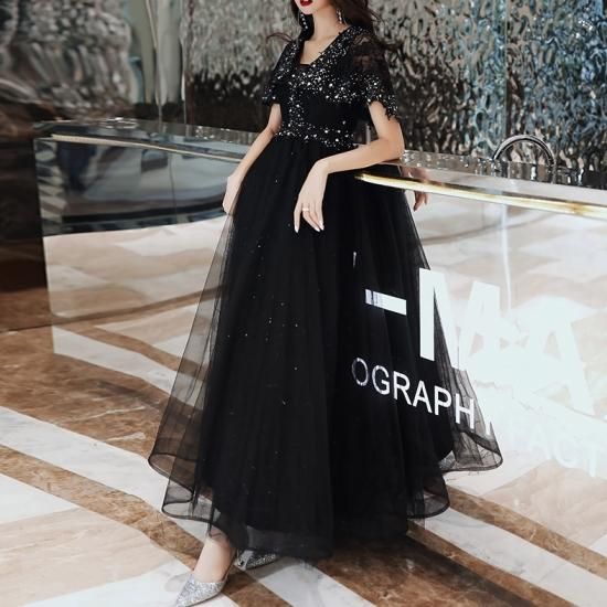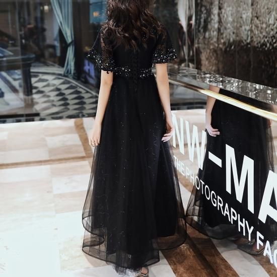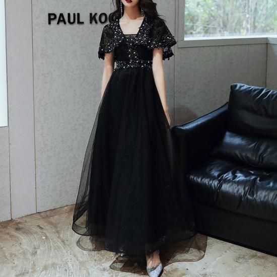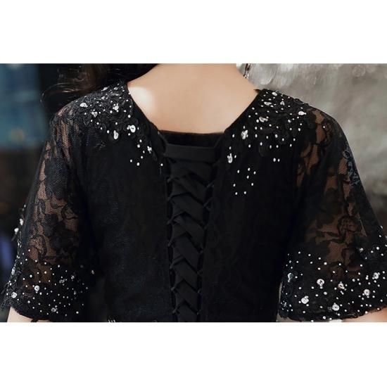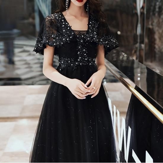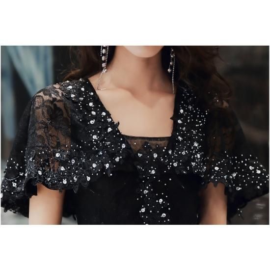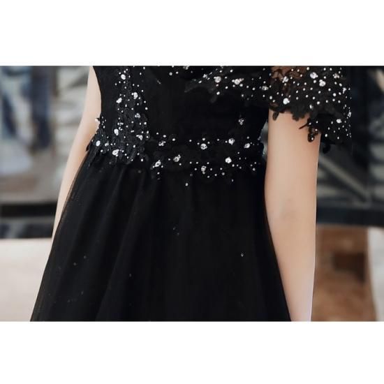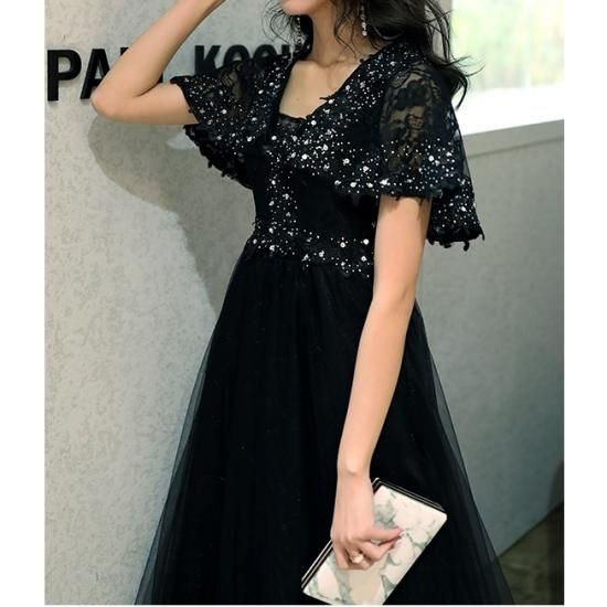ドレス ワンピース ブラック レース フリル ビジュー キラキラ チュール オーガンジー エレガント パーティー 結婚式 二次会 お呼ばれ