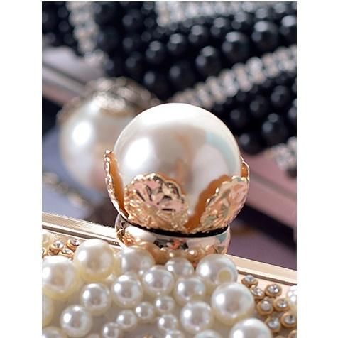 がま口部分の大きなパール装飾がエレガントな印象です。
