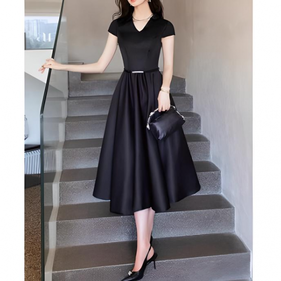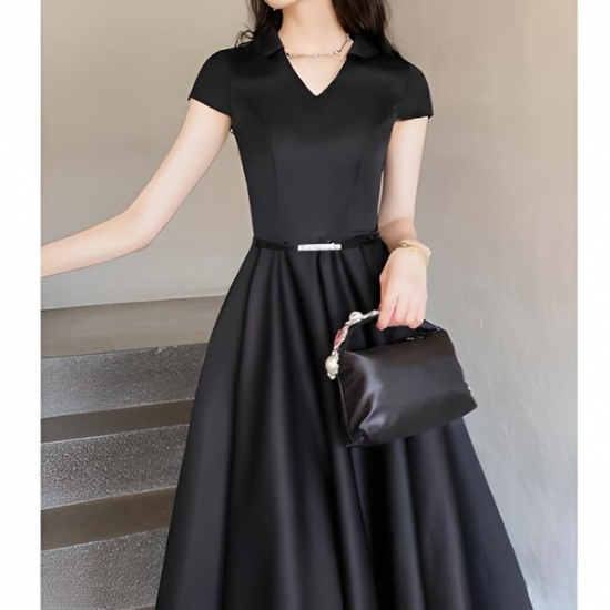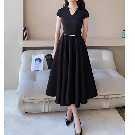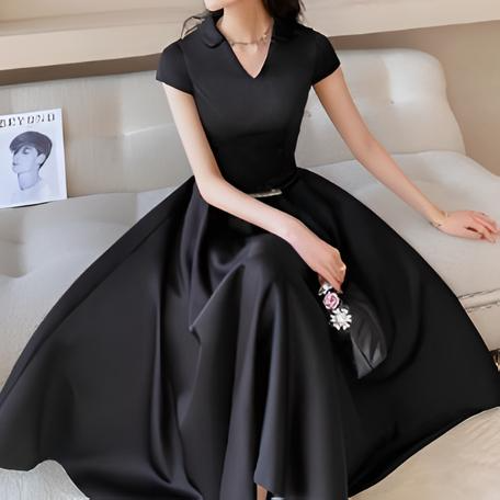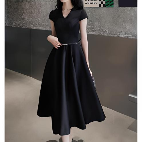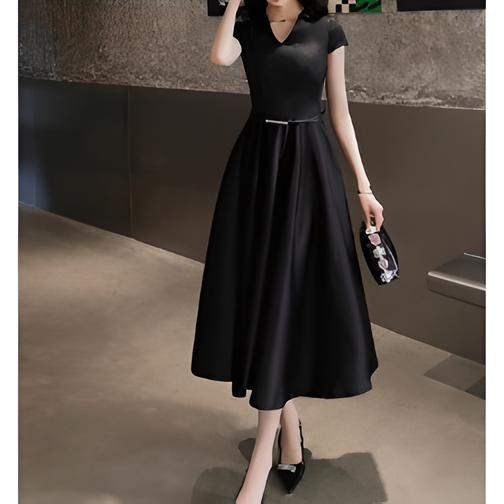 洗練されたこのドレスは、シンプルながらも美しいシルエットが特徴。Vネックラインとフィット&フレアのデザインが女性らしい優雅さを引き立て、細ベルトがウエストを強調してスタイルアップを実現します。ミディ丈の上品な長さが、幅広いシーンで活躍。合わせるアクセサリーで印象を自在に変えられる万能な一着です。